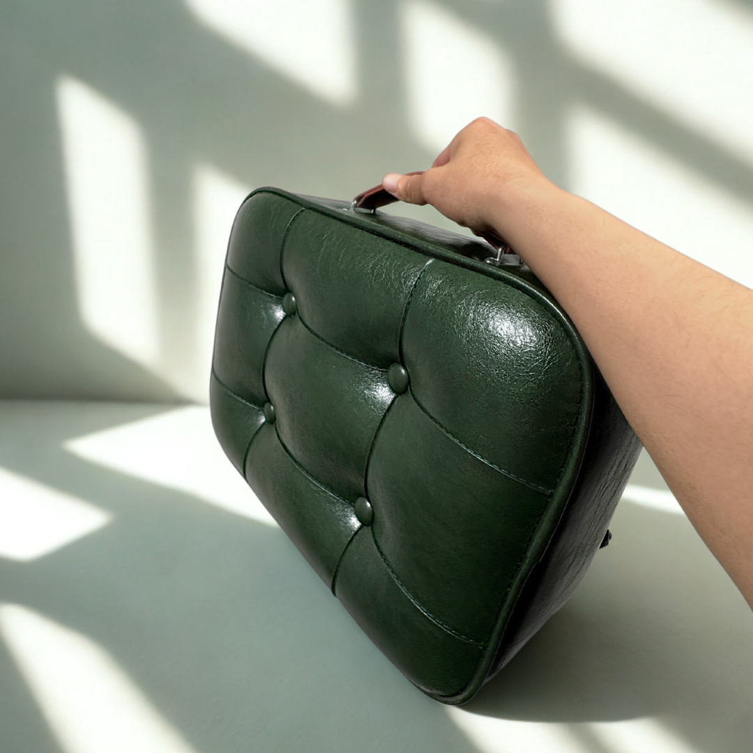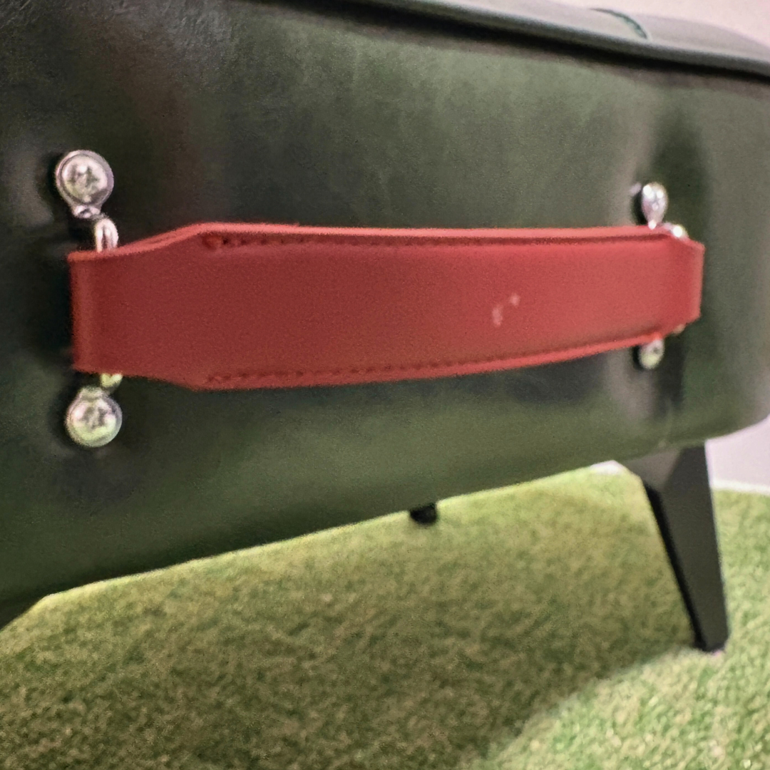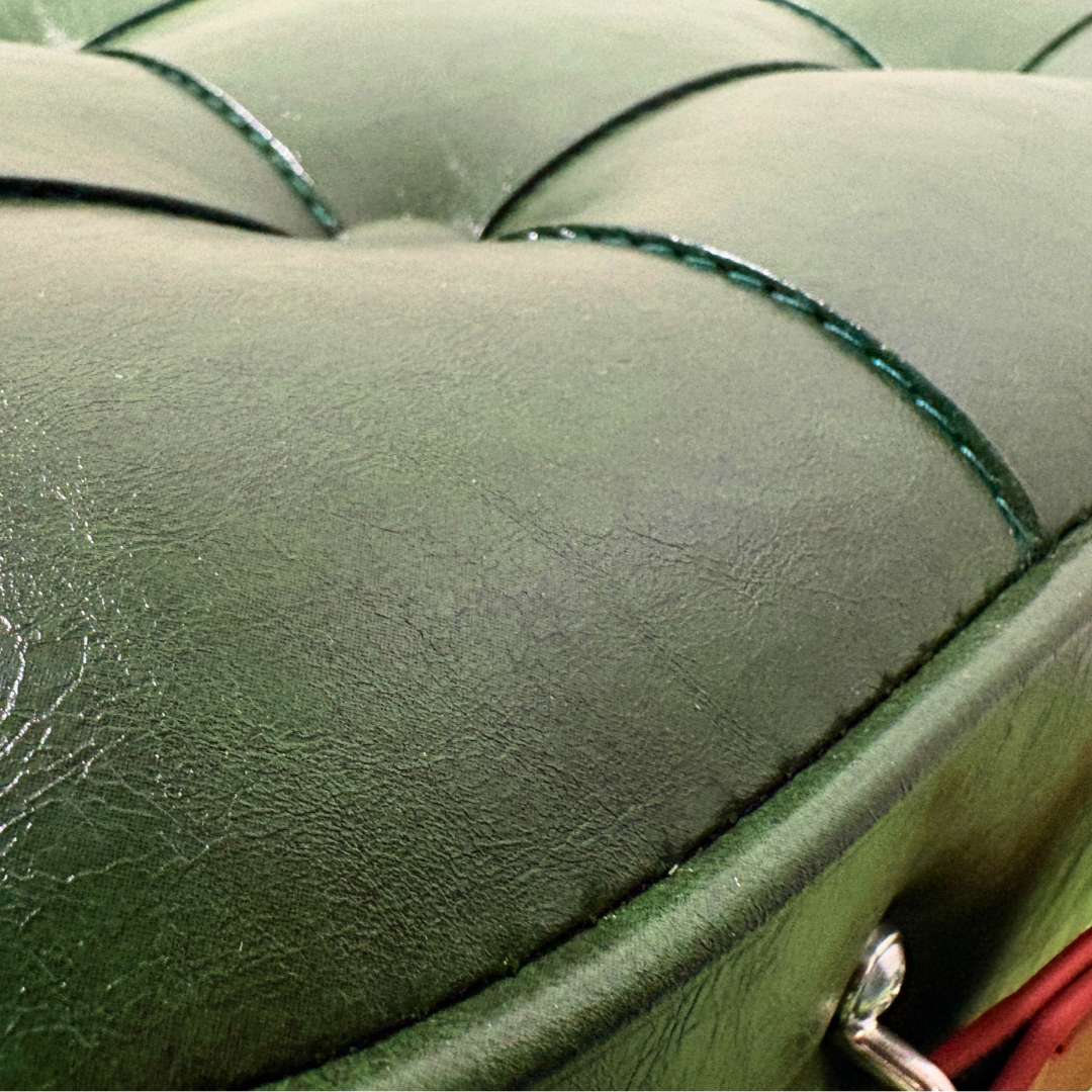 丁寧に仕上げられた木製フレームと重厚感のある張地が、空間に洗練された落ち着きをもたらすヴィンテージ風オットマン。インテリアとしても、足を休めるパートナーとしても、上質な存在感を放ちます。